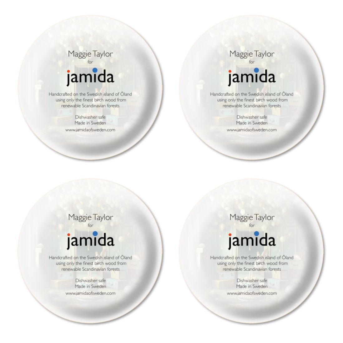 Coaster 4 pcs Ø11cm Birch wood