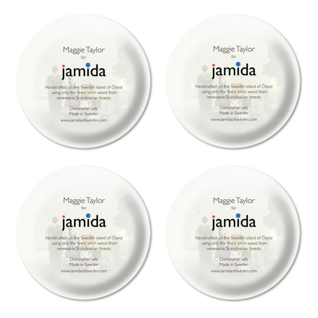 Coaster 4 pcs Ø11cm Birch wood